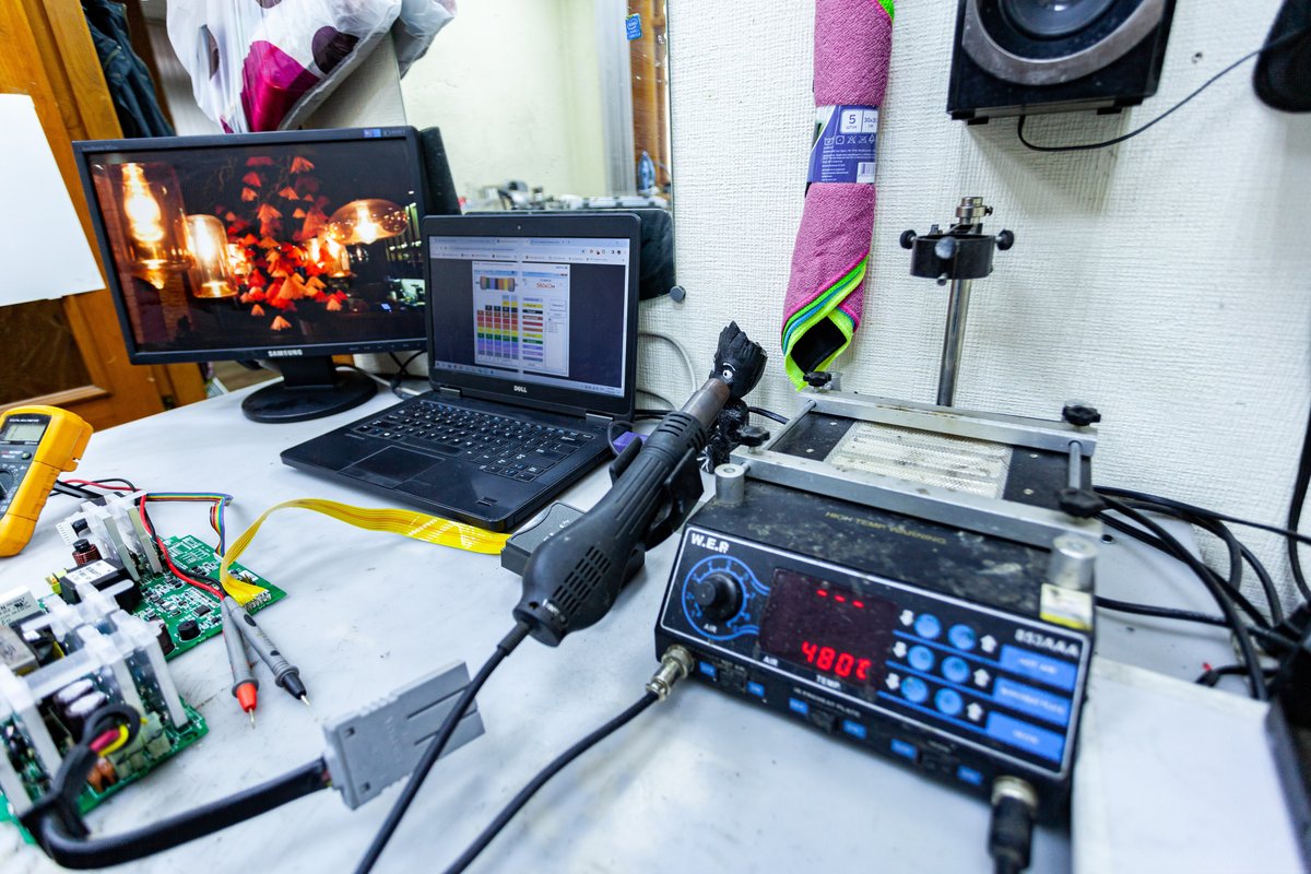 Был несколько раз, все делали качественно, все хорошо работает. В последний раз приносил микшерный пульт, не работал блок питания, внутренности, он скрипел, целая куча была проблем. Сотрудники общались хорошо, были корректны, вежливы.